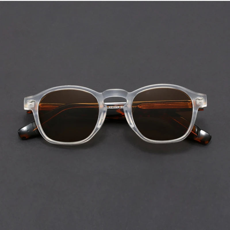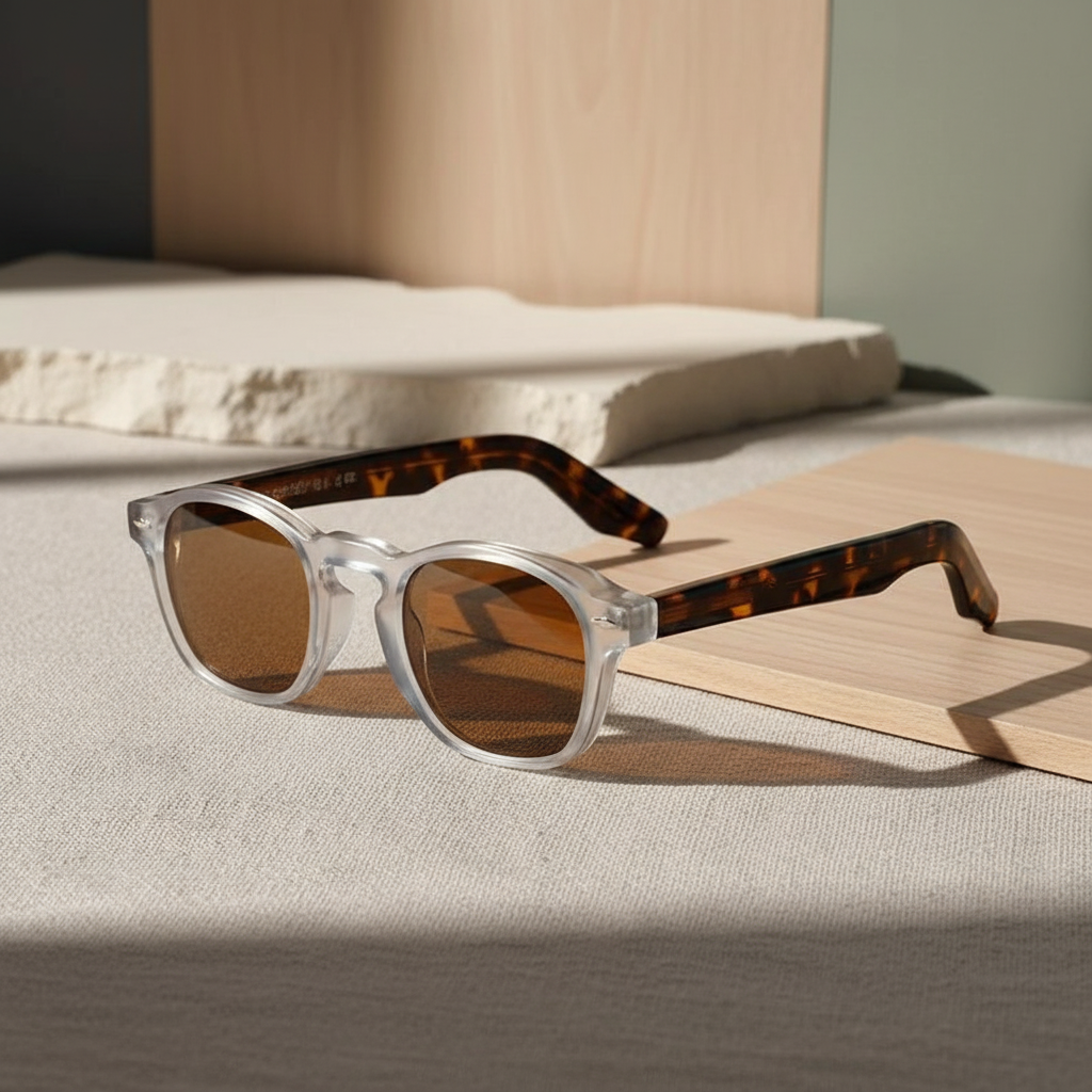Matte crystal frame, tortoise arms, and lenses that balance shade with clarity. They stand out the way good design should — quietly, confidently, and on purpose. No flash. Just focus.